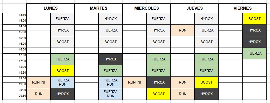 – BOOST : entrenamientos de fuerza orientados al rendimiento